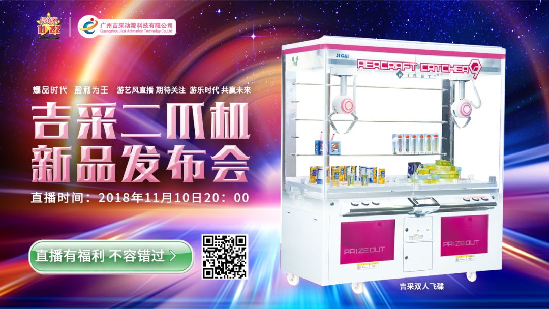 11·22星力采购节上,吉采动漫携最新二爪机:吉采双人飞碟和吉采飞碟而来,将会在11月10日20:00进行新品直播发布会,面对双十一,推出巨大的优惠政策,让更多的买家及时捉住机遇,在双十一获得更大的收获!