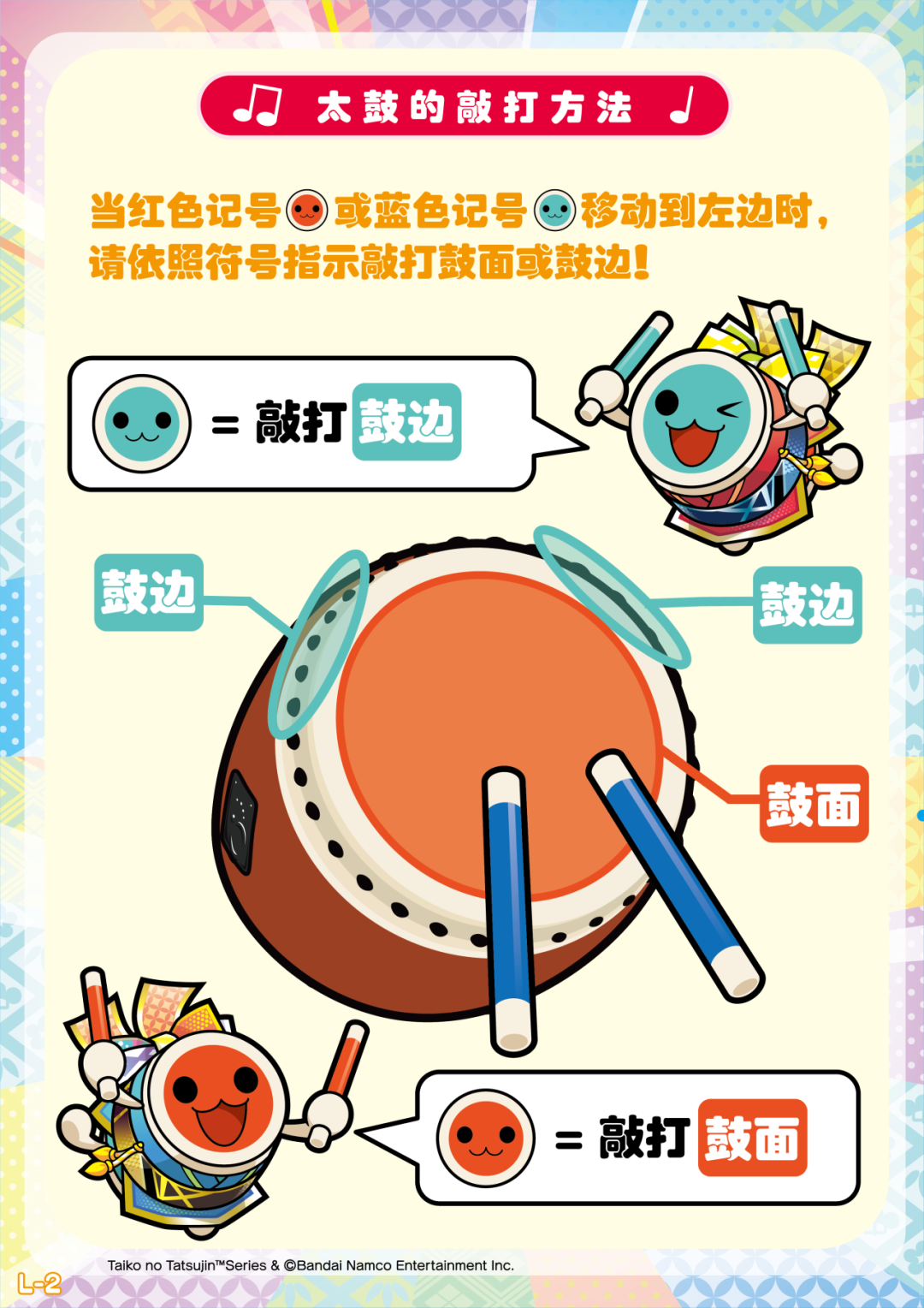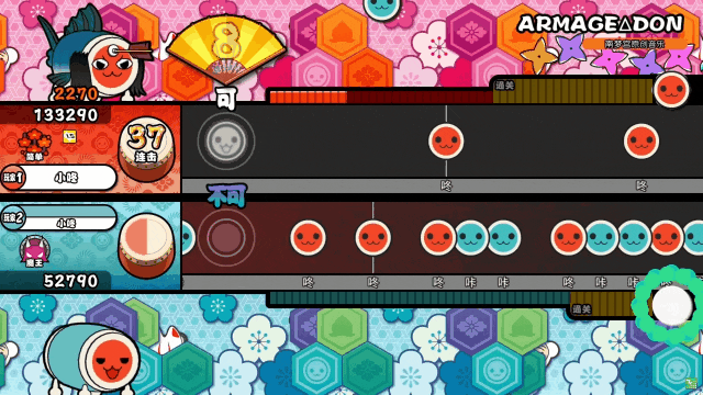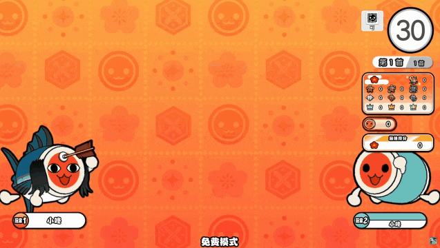 分别为红色的音符(咚)、蓝色的音符(咔)