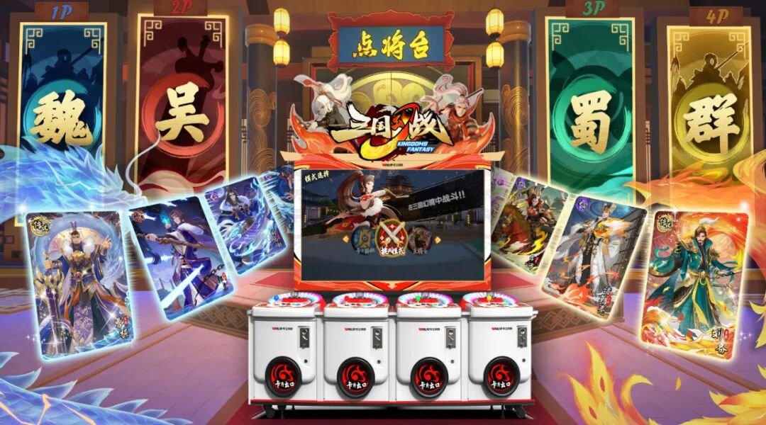 家喻户晓的三国演义故事,早已深入民心。人民文学出版社的《三国演义》总销量达到了5000多万册,覆盖人群数以十亿计,可谓名副其实的国民IP。华立科技,作为中国商用游乐设备发行与运营的领军者,打造的这款自研卡片机游戏《三国幻战》,就是把经典的三国故事与现代游戏技术完美融合。这款以魔幻闯关为主线,卡片收集、对战为核心玩法的集换式卡片机游戏,为玩家带来65寸4K超大屏幕的视觉盛宴和精美镭射工艺的卡牌集换全新玩法。玩家通过微信和英雄令IC卡登录,不仅能体验到策略和卡牌培育带来的乐趣,还能沉浸在模拟的三国战场中,使出酷炫技能,沉浸式感受群雄争霸,激爽击退魔化BOSS的快感!