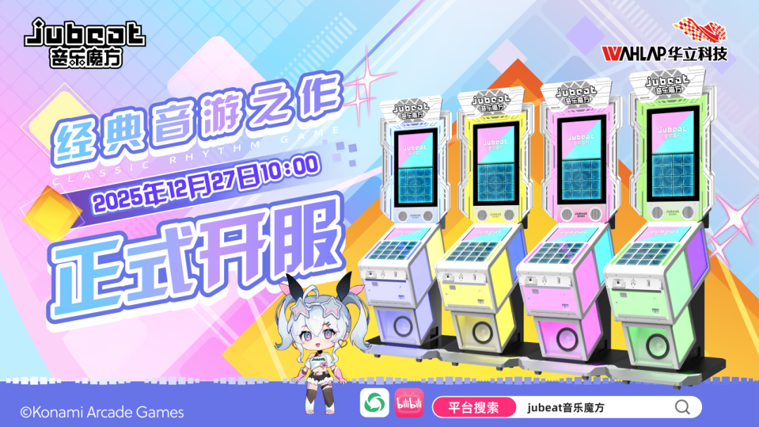 2025年12月27日,由知名游戏公司KONAMI正版授权、广州华立科技股份有限公司(以下简称:华立科技)全新发行的音乐类游艺设备——《jubeat音乐魔方》在中国大陆正式开始运营。该设备凭借其独特的玩法积累了深厚的用户基础与独特的情怀记忆。历经沉淀与期待,此次以全新姿态回归的《jubeat音乐魔方》,旨在为喜爱音乐节奏游戏的玩家们带来一个融合经典玩法、操作创新与社交乐趣的新选择,在延续熟悉体验的同时,开启线下音乐游乐的新篇章。