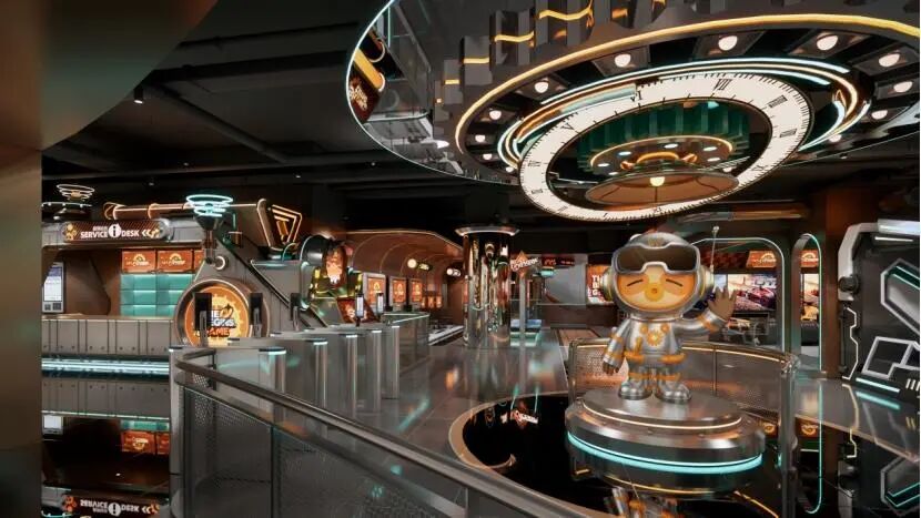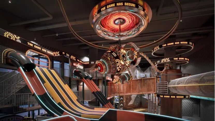 区别于传统游乐场所的“设备堆砌”模式,WUNPARK以“超体旅行计划”为核心世界观,将5000㎡空间打造成穿梭3075年多元宇宙的“星际快车”,融合蒸汽朋克美学与赛博霓虹光效,构建“时间裂缝、星际奇域、侦探基地、诺亚方舟”四大主题区域,一步一景皆具科幻电影质感,让玩家实现“把科幻搬进现实”的沉浸式体验。
