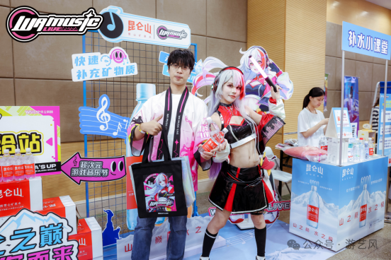 华立科技致力于打通从游戏运营到内容消费的价值全链路,提升用户生命周期价值(LTV)。现场不仅演绎了观众们耳熟能详的音游曲目及经典游戏动漫音乐作品,还配置了《舞萌DX》《中二节奏》《太鼓之达人》等游艺IP体验区,搭载超人气曲目,让来到现场的观众朋友们深度体验音游IP的魅力。除此以外,华立科技更是与昆仑山、美年达等快消品牌达成跨界合作,在WA MUSIC-LIVE超次元游戏音乐节现场设置不同体验活动,展现商业化联动的多元可能性。