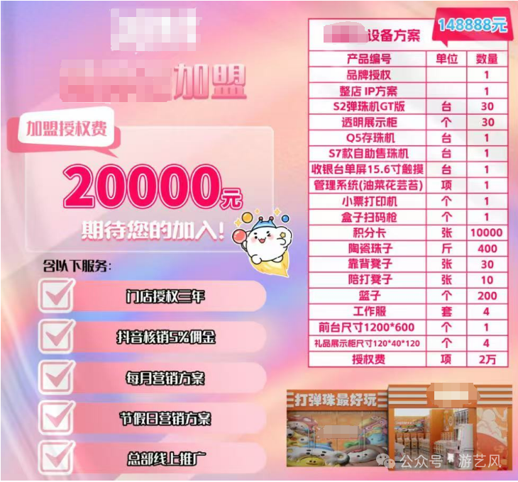 某品牌负责人透露,当前弹珠机毛利率可达80%,优质点位三四个月即可回本。记者获取的加盟方案显示,14.88万元的套餐包含品牌授权、设备采购及营销支持,部分商家通过抖音团购实现日均四五千元的营业额。
