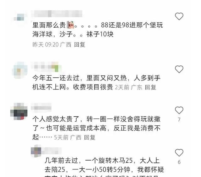 家长们想带孩子寻找点民族记忆,结果只看到一堆程式化的游乐设施。新鲜感一过,谁还愿意花几百块钱,一家三口进去闻着不流通的浑浊空气,吹着不怎么给力的冷气呢?同样的钱,去隔壁场地更大、项目更多的方特能玩上一整天。